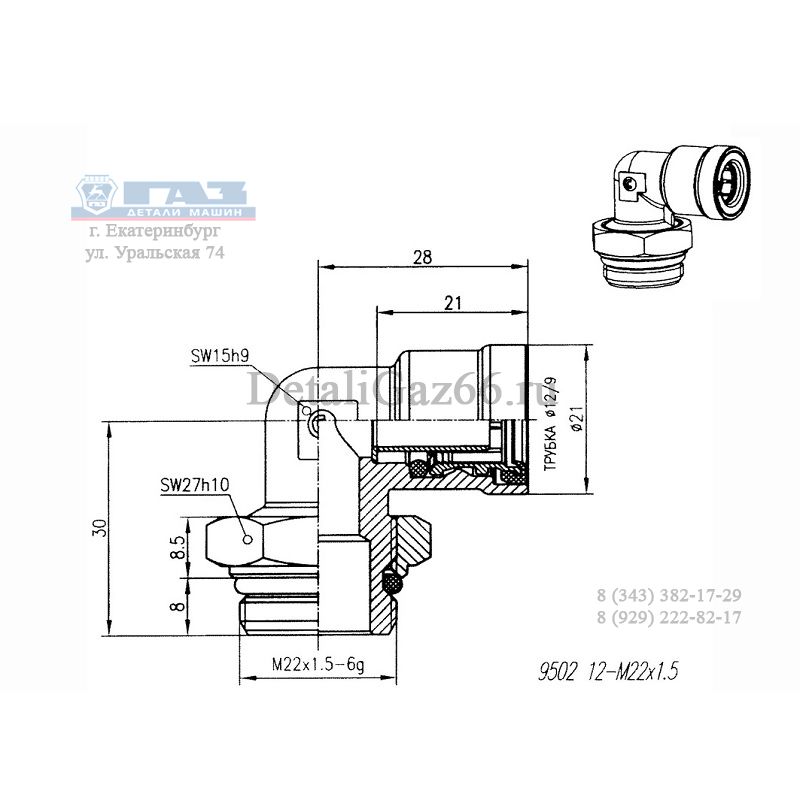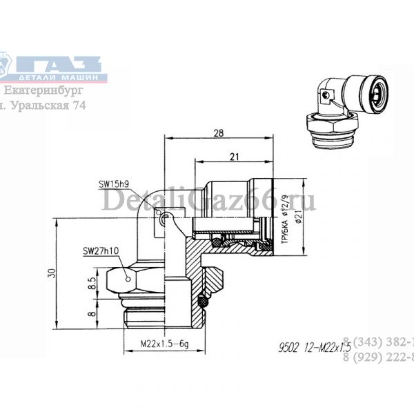 Фитинг угловой тормозных трубок ГАЗон-NEXT (быстроразъемные) М22Х1.5 (ООО "ПИТ" Camozzi) /.950212-M22X1.5/