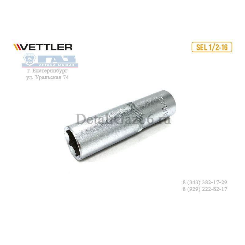 Головка 1/2" 16 мм 6 гр.удлиненная (VETTLER) /SEL 1/2-16/