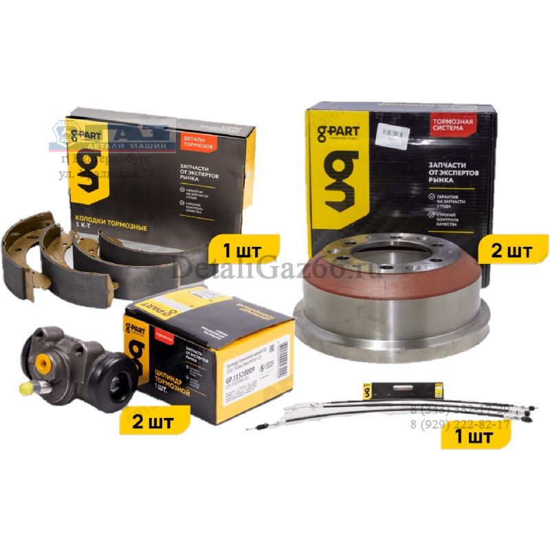 Комплект заднего тормоза ГАЗель (барабан 2шт., колодки, цилиндры, троса) (в упак. g-PART)